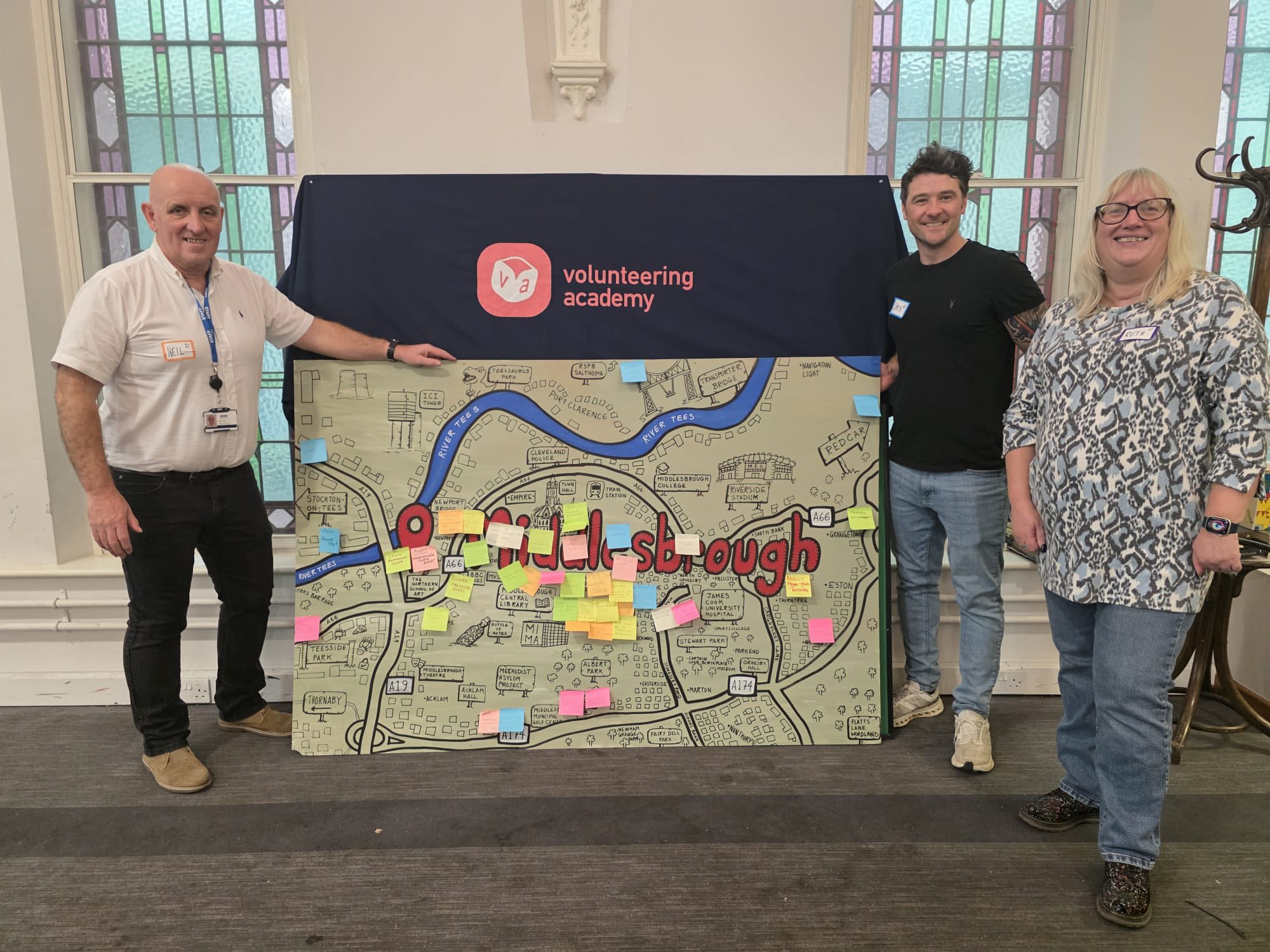 A highlight of the day was an interactive activity led by Chris, who used his artistic talents to create a large illustrated map of Middlesbrough. Participants were invited to add information about their roles and organisations to the map, visually showcasing the diversity and reach of volunteering across the area. This exercise sparked meaningful conversations and offered new insights into local activity, with one attendee reflecting that it was a “good way to see what is going on in the area.”